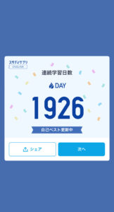 リクルート社の英語学習「スタディサプリ新日常英会話」1926日目になりました。