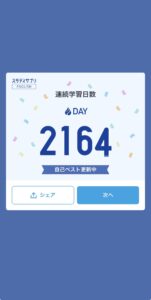 リクルート社英語学習「スタディサプリ新日常英会話」2164日目になりました。