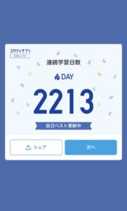 リクルート社の英語学習「スタディサプリ新日常英会話」2213日目になりました。